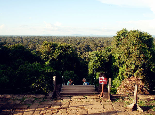 吳哥窟有著格局式的排法,單數塔樓,斗膽走在傾斜的階梯上,讓我聯想到佛法的精深博大,從古至今,要證等正覺,修行路上是不斷往內深入,再深入。所謂的粗細微玄妙,就是這道理。修行路上,要看好走好,難度極深。窄小的階梯意會著謹言慎行,一個不小心即是千苦恨!其實吳哥窟非靈塔,靈山也只在你心頭。