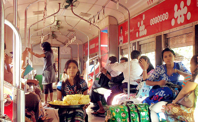 回到仰光,今天的行程就是坐火車環城3小時,每人只要200kyats = RM1 而己!從Anawratha St.步行到仰光車站太陽太猛,人太累。坐火車雖然沒有美麗的風景可看,卻是了解當地生活其中一項最好的途逕。