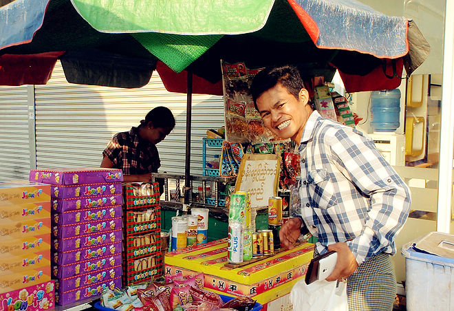 從Bagan 回到仰光的Aung Mingalar 車站是清晨5am。帶著半睡半醒下車,德士司機還是慣性地爭先恐後般拉攏程客上他們的車,有的還算有生意頭腦,結伴載半程收半程,這樣接的客人也多了。Boutique 30th hotel 在Bangla street,這條Anawratha St. 是大街,走到14th-18th 是唐人街。走著走著,竟然看到了油條,又看到了牛奶檔,有華人的地方總能看到這些食物。